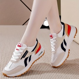 Women's Mesh Flat Sneakers, Casual Round Toe Lace Up Low Top Shoes, Versatile Flat Shoes