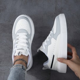 Women's Solid Color Casual Sneakers, Lace Up Platform Soft Sole Skate Shoes, Low-top Versatile Walking Shoes